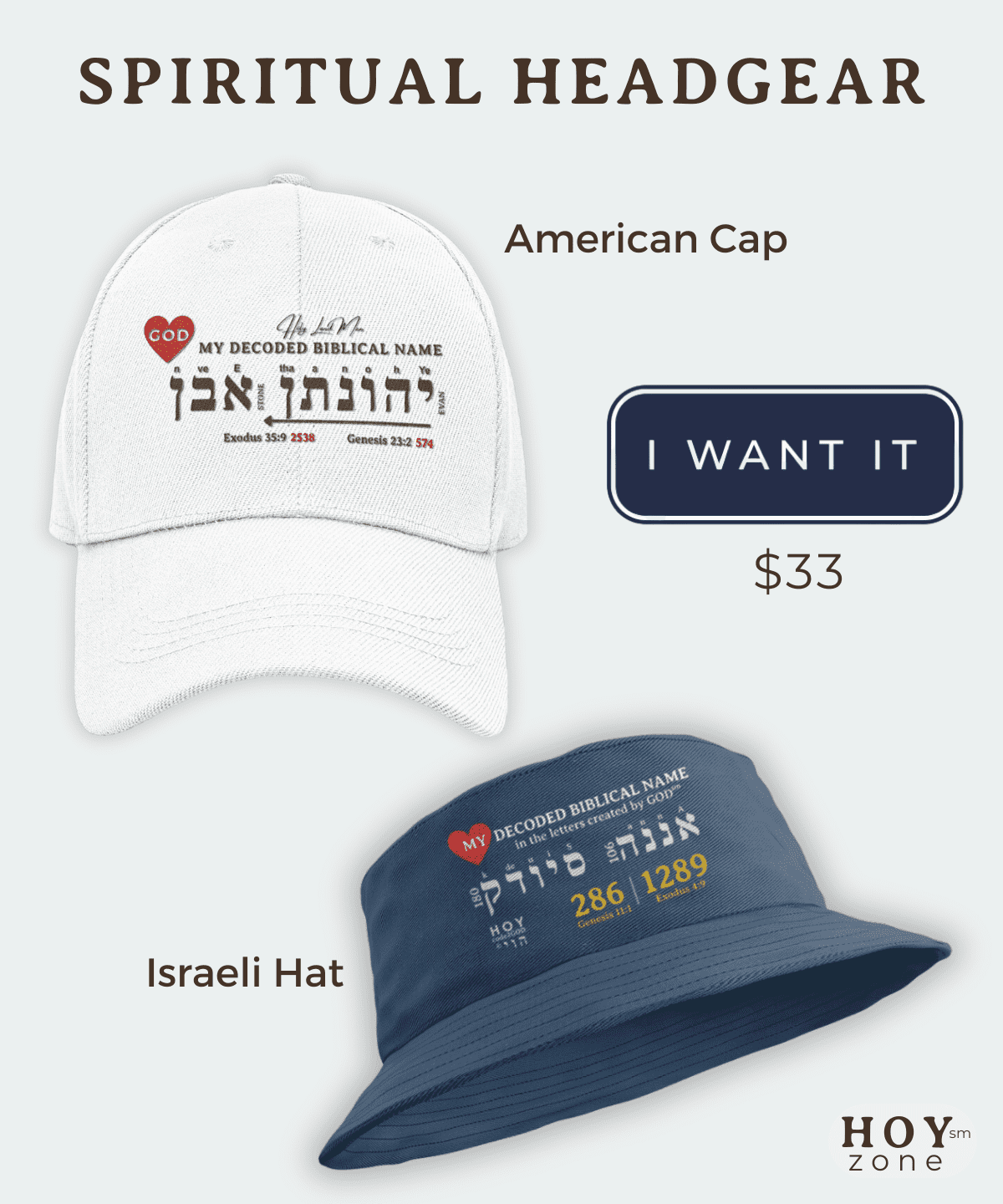 hTwo types of HOYzone headgear: American cap and Israeli hat