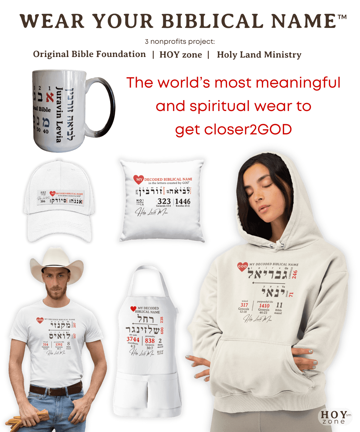 You possess a Biblical name inscribed in the sacred letters of the original Bible. God has assigned a unique numerical code, ranging from 1 to 400, to each of the 22 holy letters in the Biblical language.