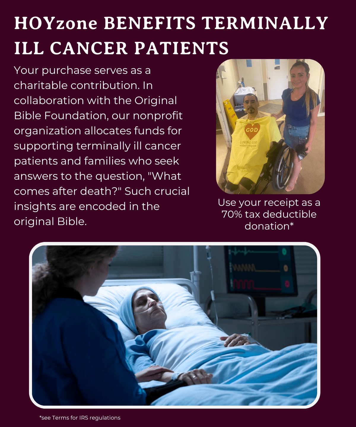 Helping the good cause of bringing the world closer to the true God and his original Bible, and terminally ill cancer patients & their families.